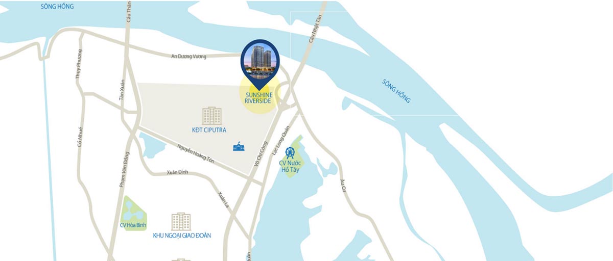 Sunshine Riverside sở hữu vị thế đặc biệt hiếm có tại hà nội khi nằm ngay bờ nam sông hồng, phía chân cầu nhật tân, trên vùng đất phú thượng – nơi nổi tiếng với những gốc đào cổ và được xem là vùng địa linh của thủ đô nghìn năm văn hiến.